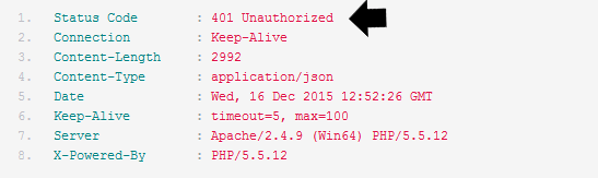 Les erreurs sont également toujours accompagnées d'une explication dans le corps de la réponse, sous forme de tableau json.